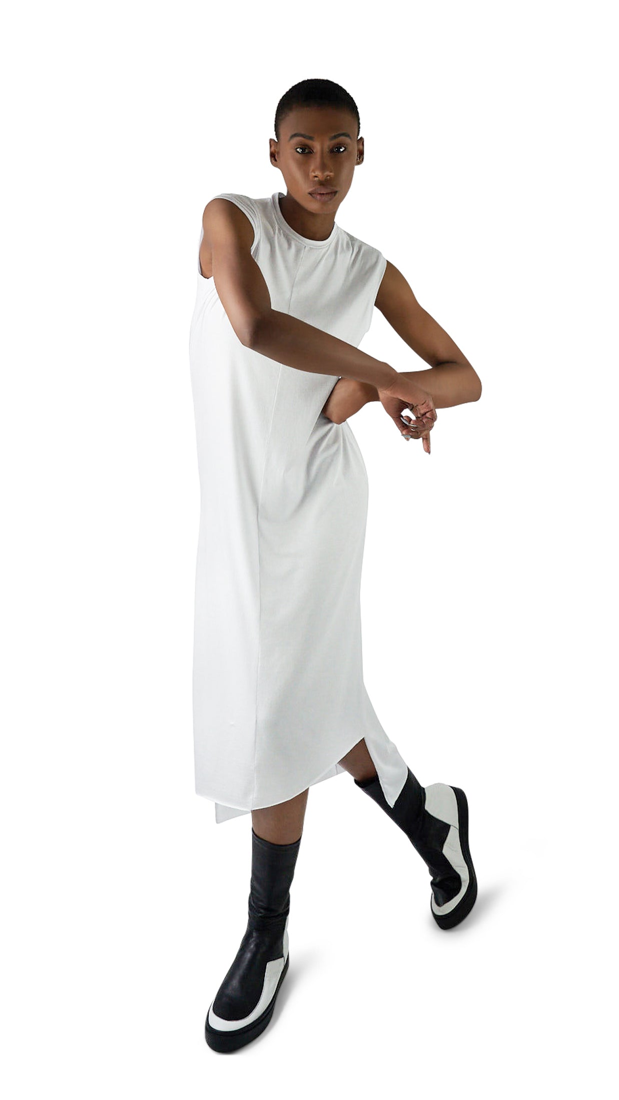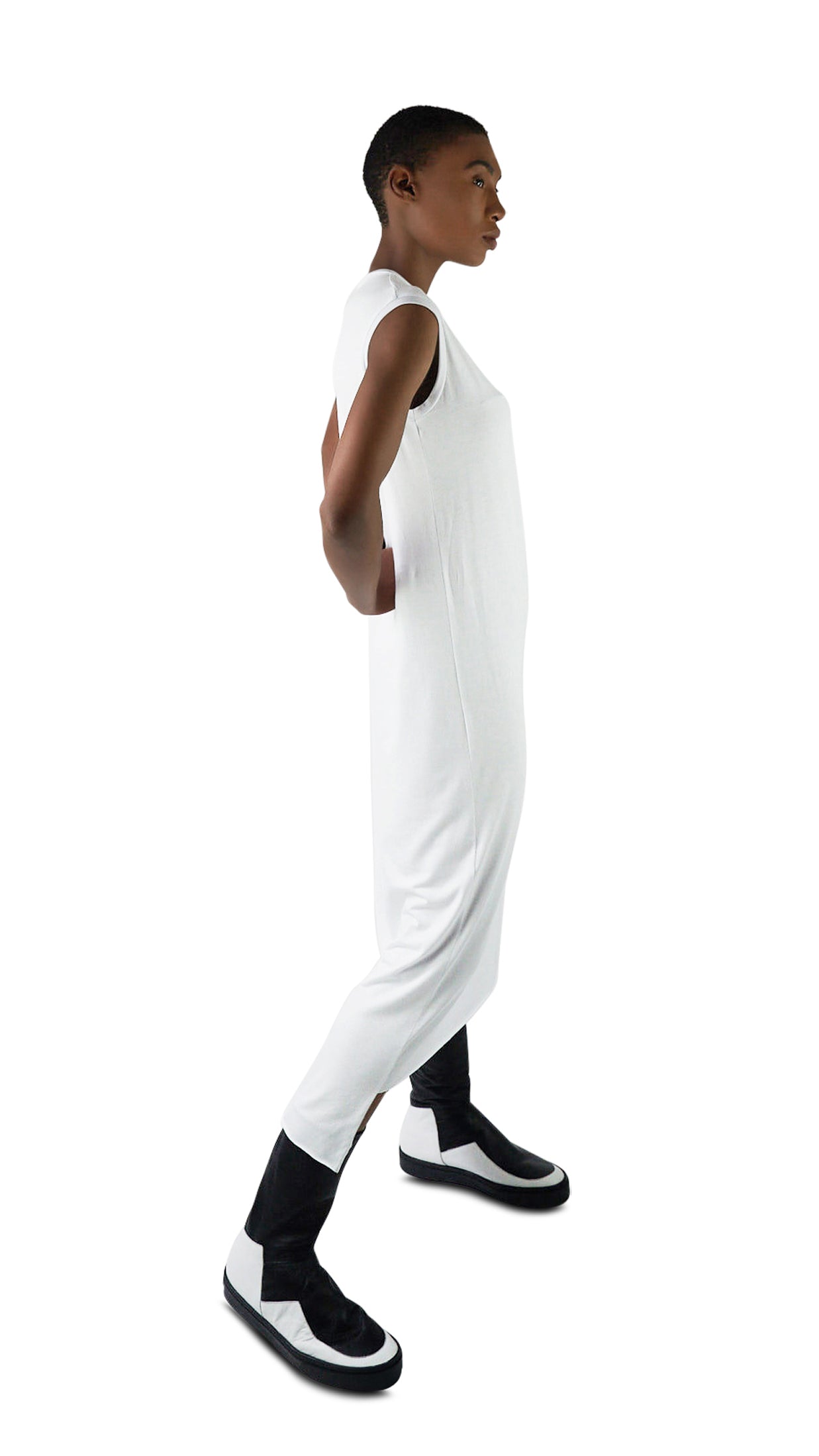 Unisex long dress made with natural materials only. Main composition is BAMBOO with asymmetrical cuts, futuristic, minimalistic look, perfect finishes on both sleeves and neckline, raw hem. Loose fit.