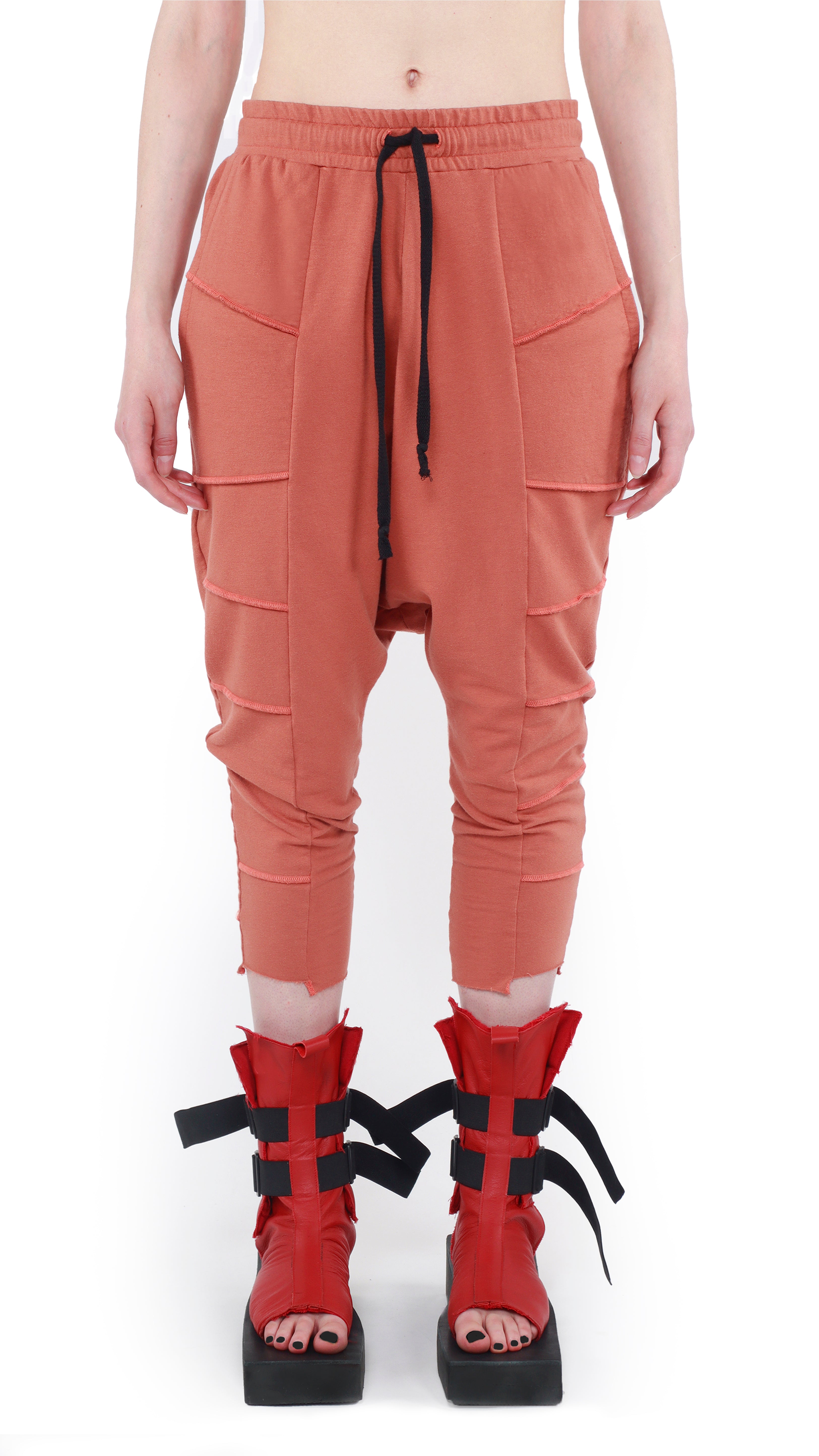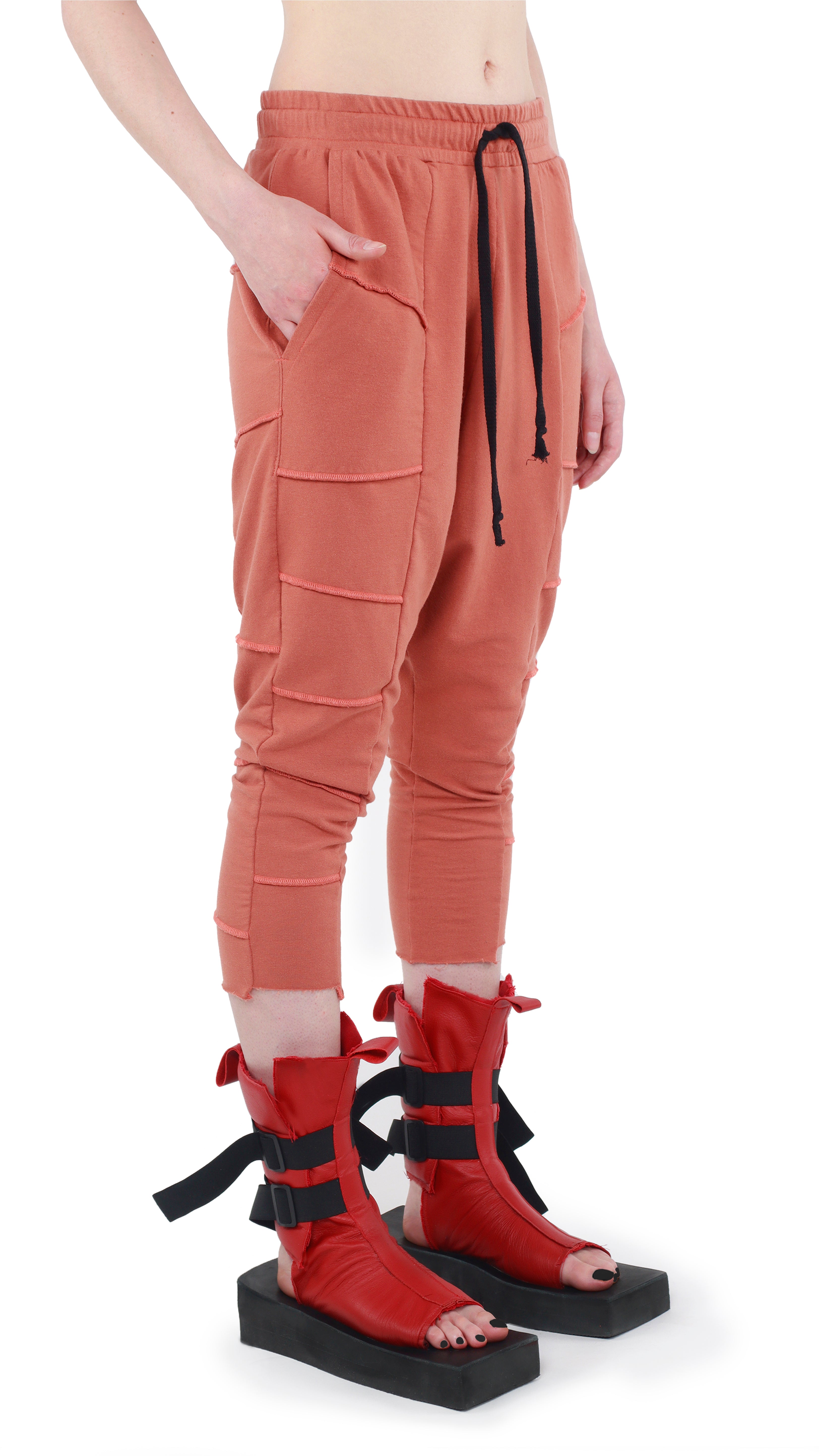 Introducing our AVANT-GARDE TROUSERS, crafted primarily from soft cotton for unparalleled comfort. Featuring multi-asymmetric side seams in both the front and back, these trousers boast a distinctive low crotch design. Equipped with two reinforced side pockets, they offer both style and functionality. The loose fit is enhanced by our signature elastic waistband, while extra-long drawstrings ensure a customizable fit for every wearer.