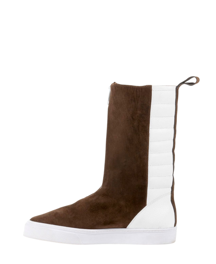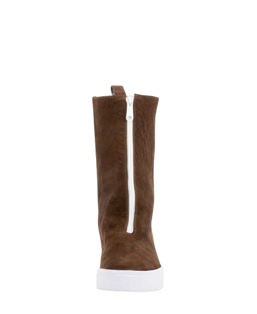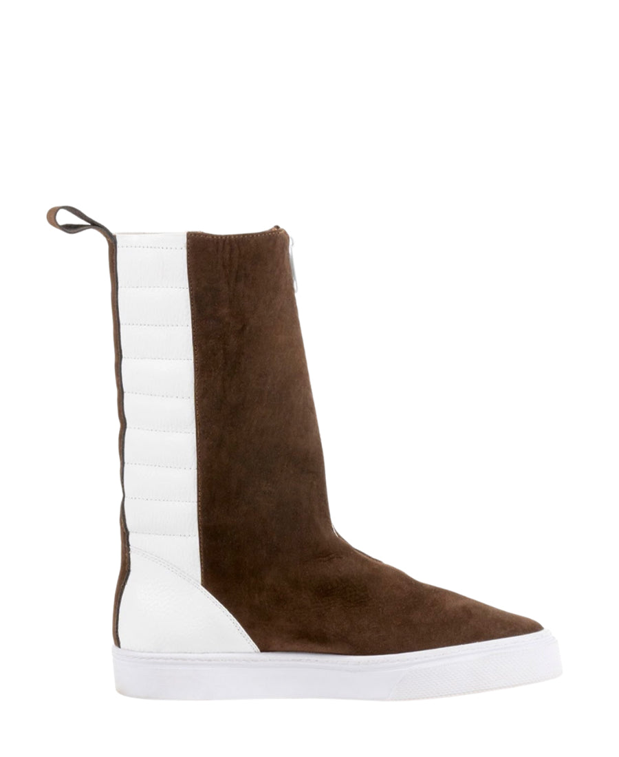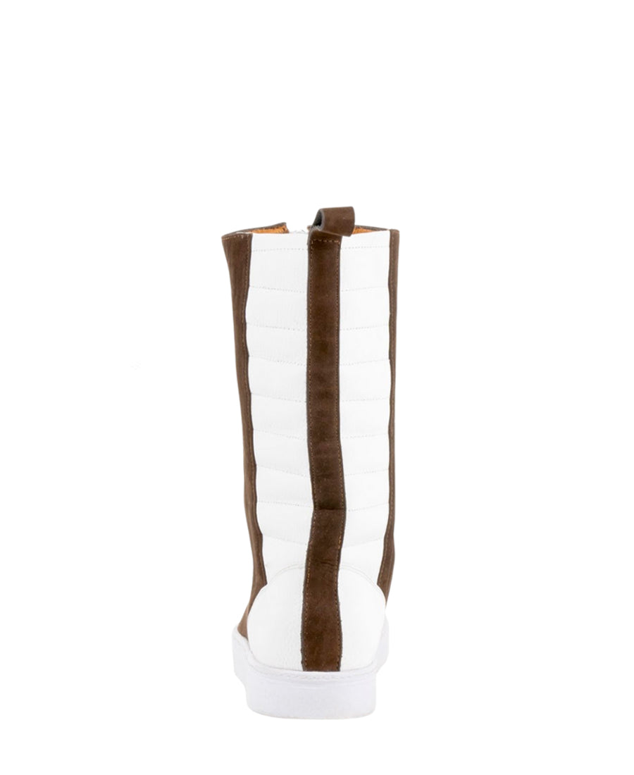 Made with Genuine Cow Leather (Napa Plena Flor). The front is made with Napa leather, it has a white zipper. The white part of the boot has comfortable padding featuring a brown stripe. The lining of the boot is made with soft beige leather. The soles are made of white rubber. Androgynous Style.
