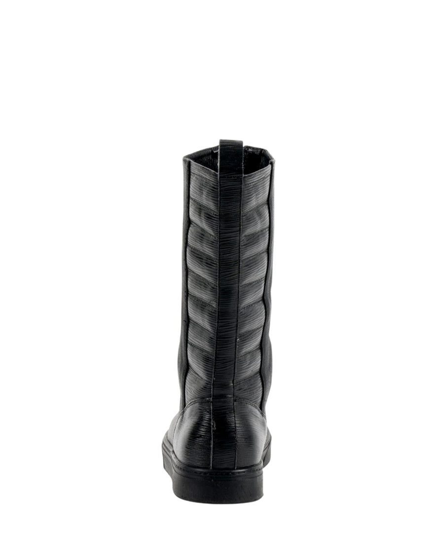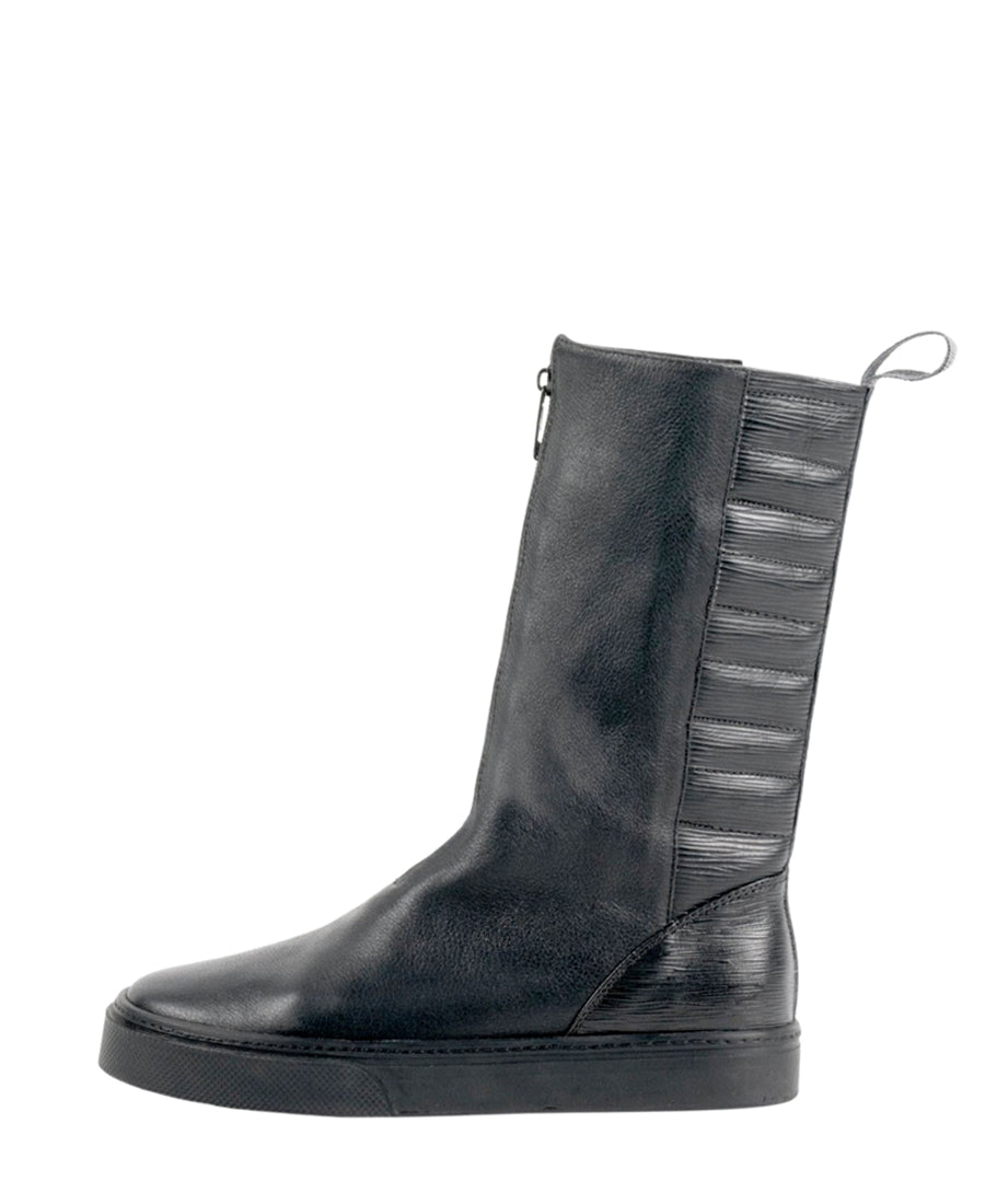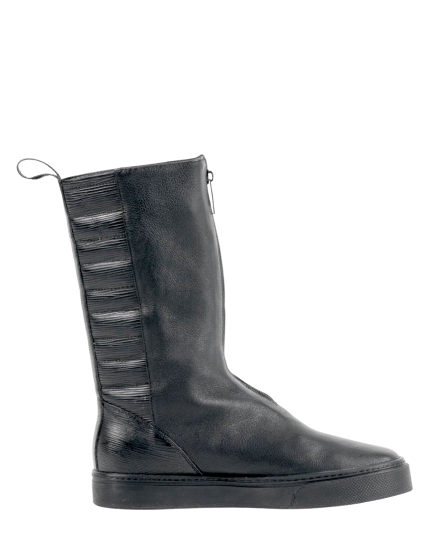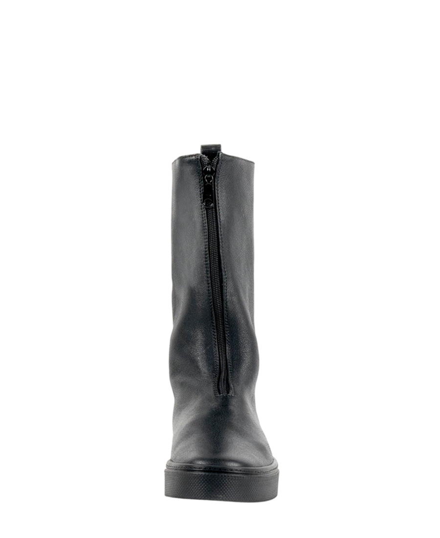 Made with Genuine Cow Leather (Napa Plena Flor). The front of these boots are made with black leather and a black zipper. The back part of the boot has comfortable padding featuring a wrinkle texture of the leather. The lining of the boot is made with soft black leather. The soles are made of black rubber.