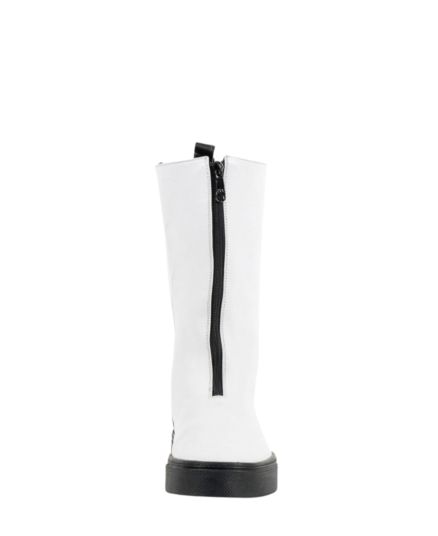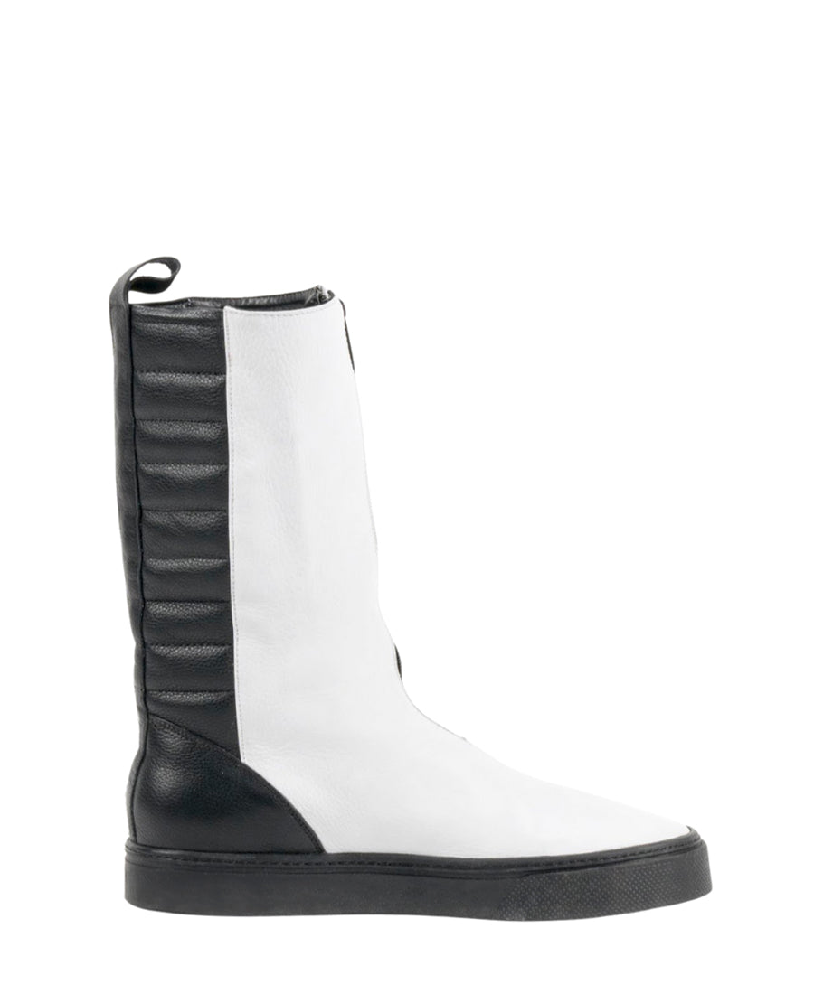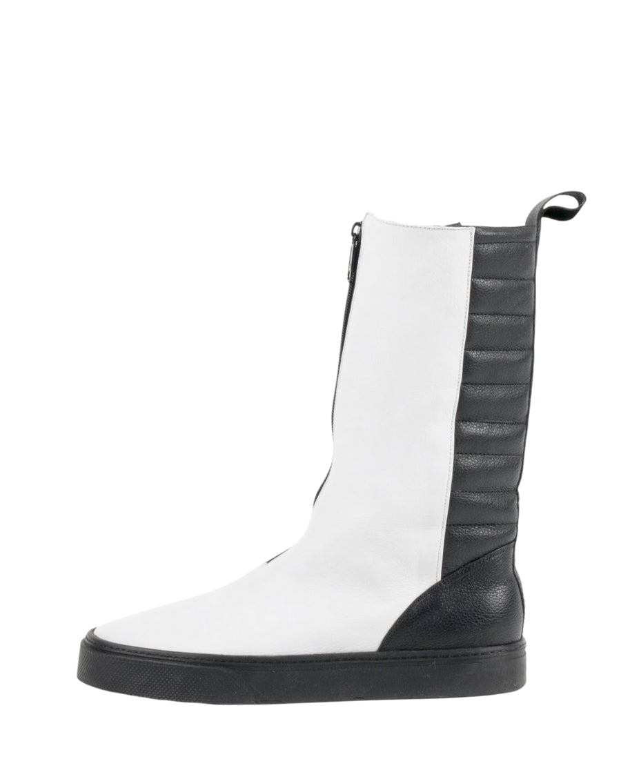 Made with Genuine Cow Leather (Napa Plena Flor). The front is made with White leather and has a Black zipper. The Black part of the boot has comfortable padding with a black stripe. The lining of the boot is made with soft black leather. The soles are made of with black rubber. Androgynous Style.