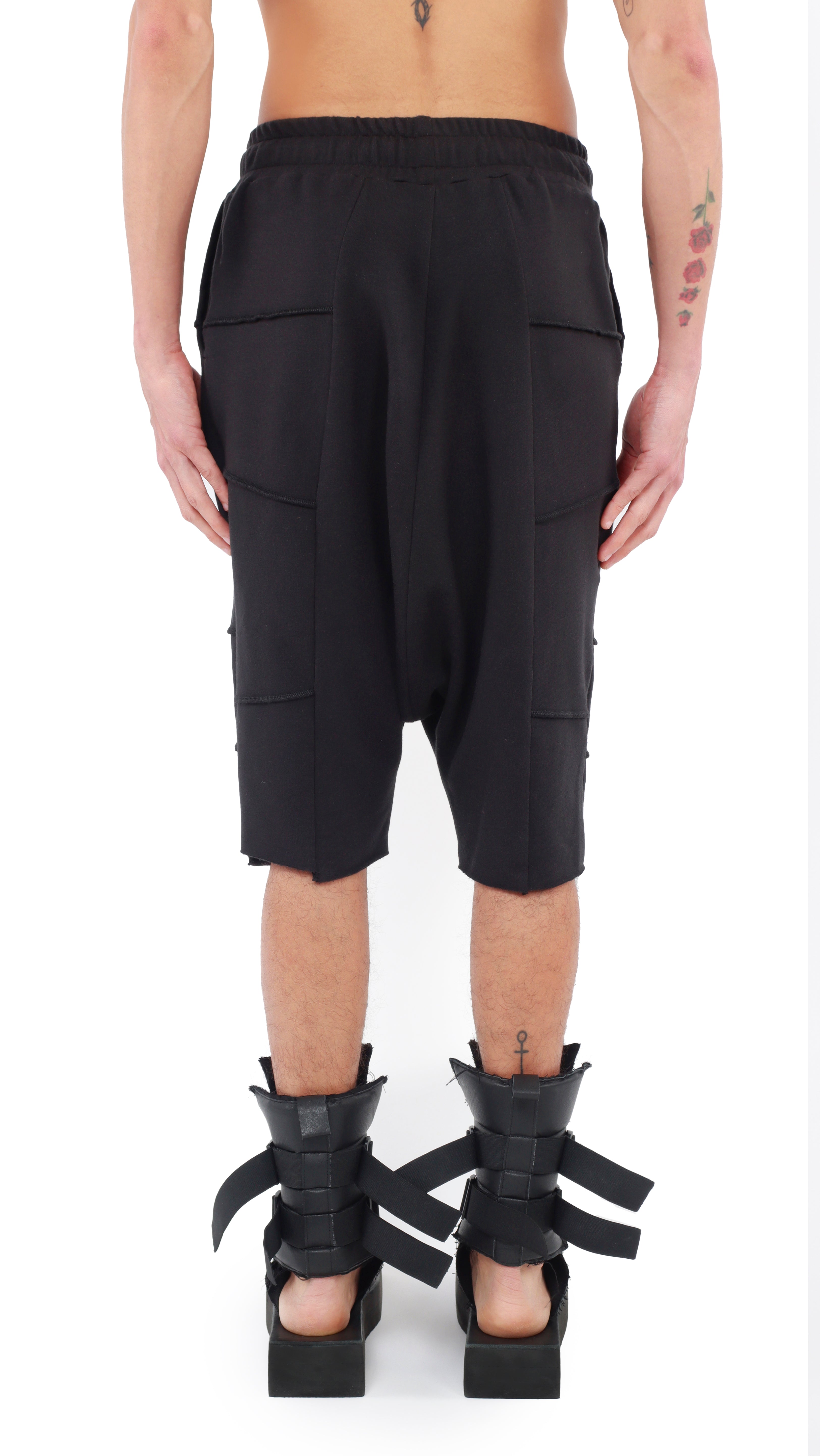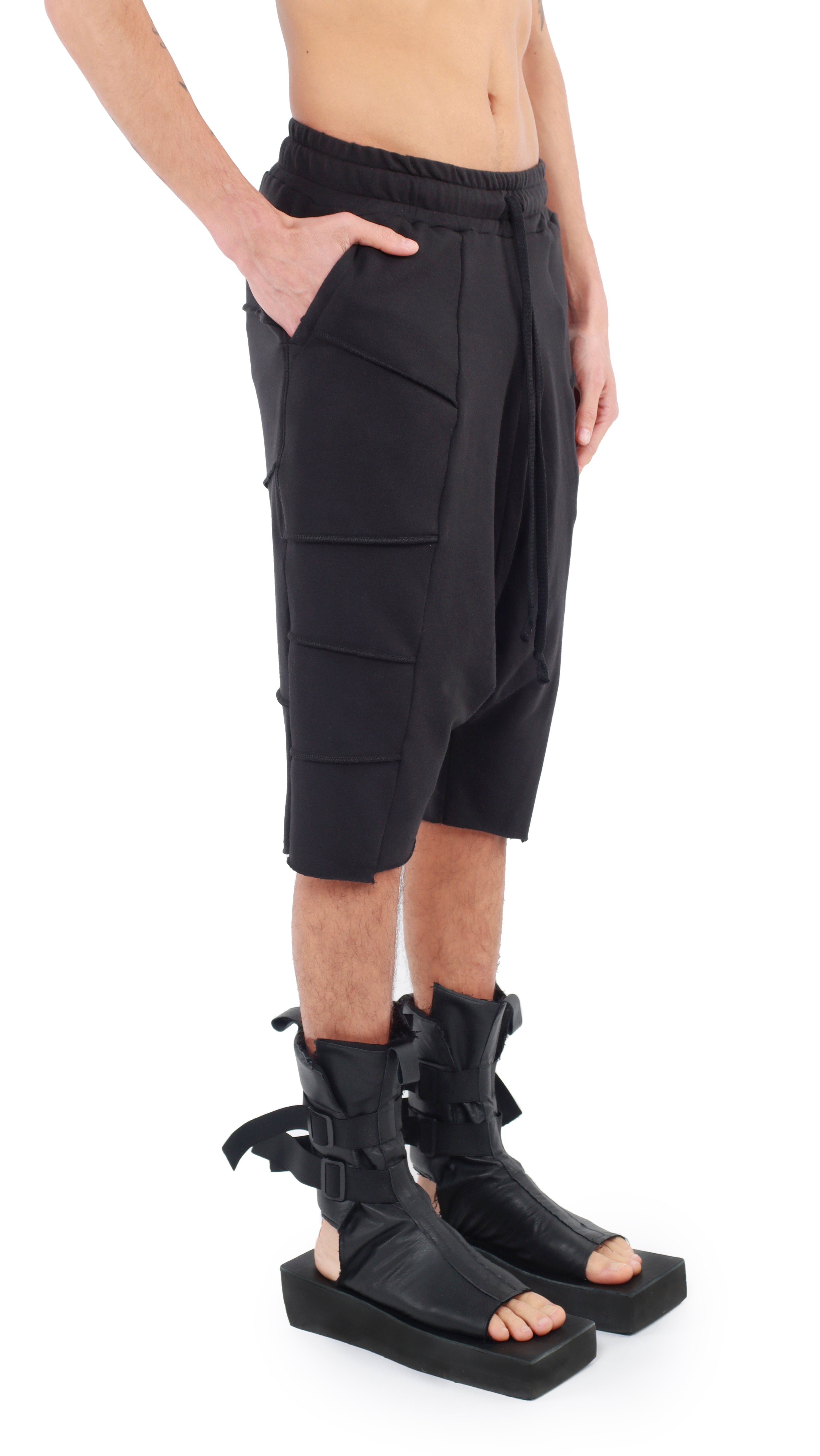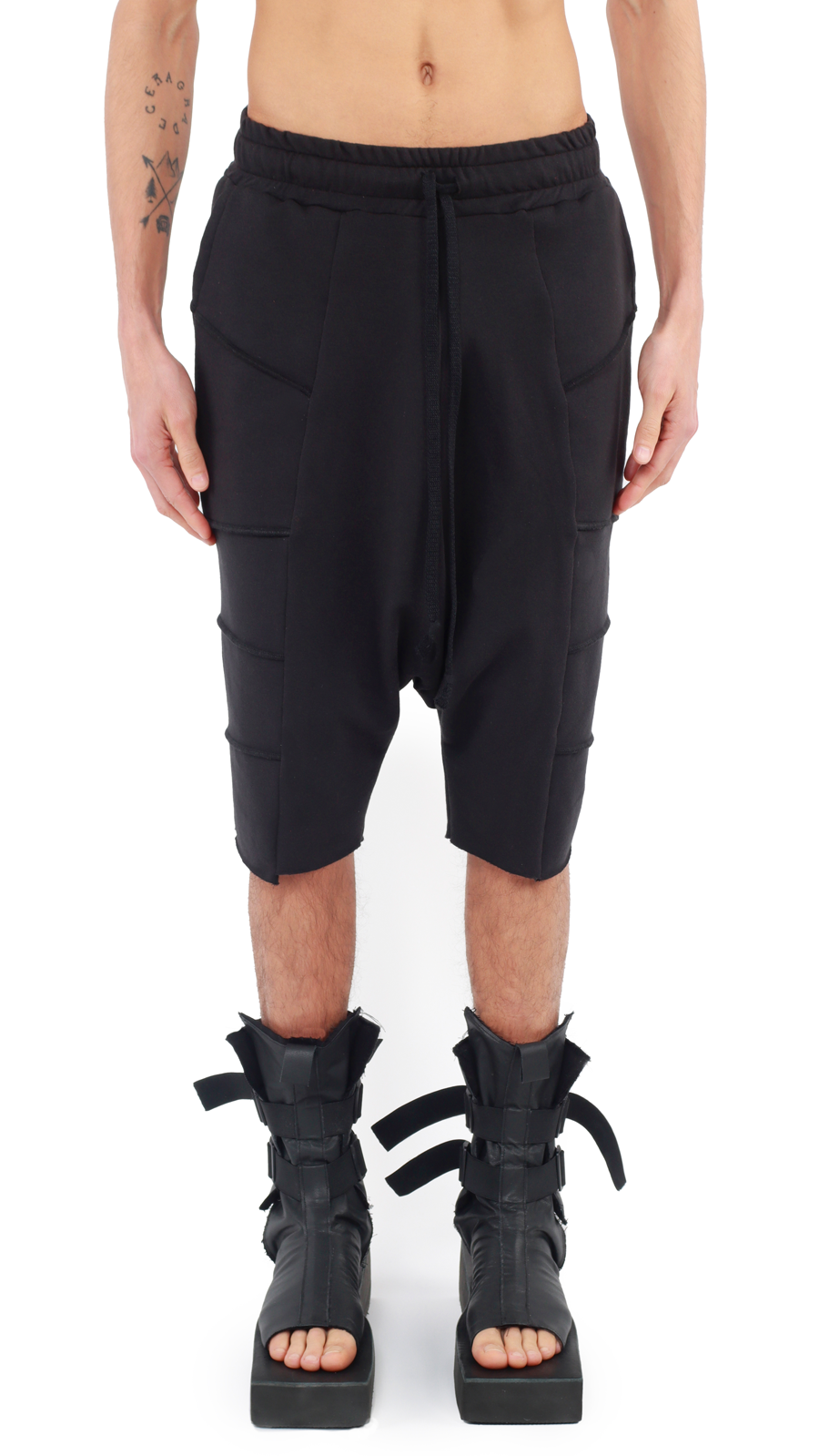 These AVANT-GARDE shorts are made mainly of Cotton. They feature side multi-asymmetric seams in the front and back, it has a low crotch. Two reinforced side pockets. Loose fit with our featured elastic waistband. Extra long drawstrings to adjust for a better comfort.
